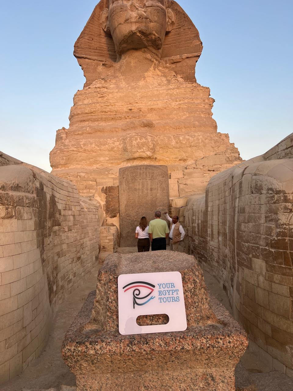 You will have free time to enter the great pyramid), though your guide is not permitted to enter with you or take a camel ride (optional). After visiting the pyramids, you will continue across the plateau for a photo opportunity of the three pyramids rising from the sands, with the Cairo skyline in the background. A short drive to the city side of the plateau finds you standing at the feet of the Sphinx, for thousands of years, the enigmatic symbol of Egypt. Special entry will be arranged exclusively to enter the Sphinx field limited to this tour.