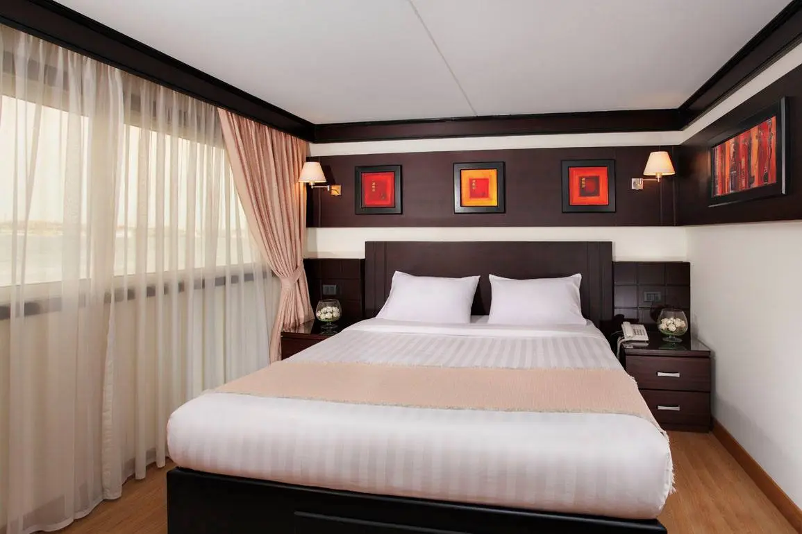 The accommodations at Merit Dahabiya are painstakingly designed to provide comfort and elegance. Whether you prefer twin beds or a more spacious setting, the panoramic windows make sure that you don't miss a single moment of the breathtaking Nile view. The boat also boasts a considerable cabin containing a bed and a terrace, giving it an individual place to unwind and enjoy the view.